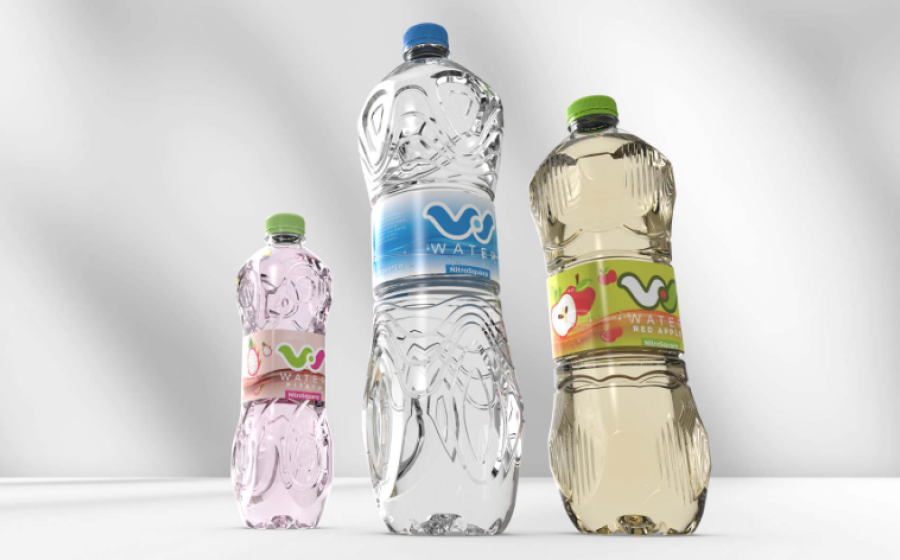 ▲사이델이 액체질소(LN₂) 도징을 적용한 생수 전용 사각형 PET 병 ‘Nitro Square’를 출시했다.