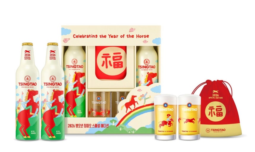 칭따오는 이날 일러스트레이터 규하나 작가와 협업한 ‘2026 병오년 복맥 에디션 패키지’를 한정 출시했다.